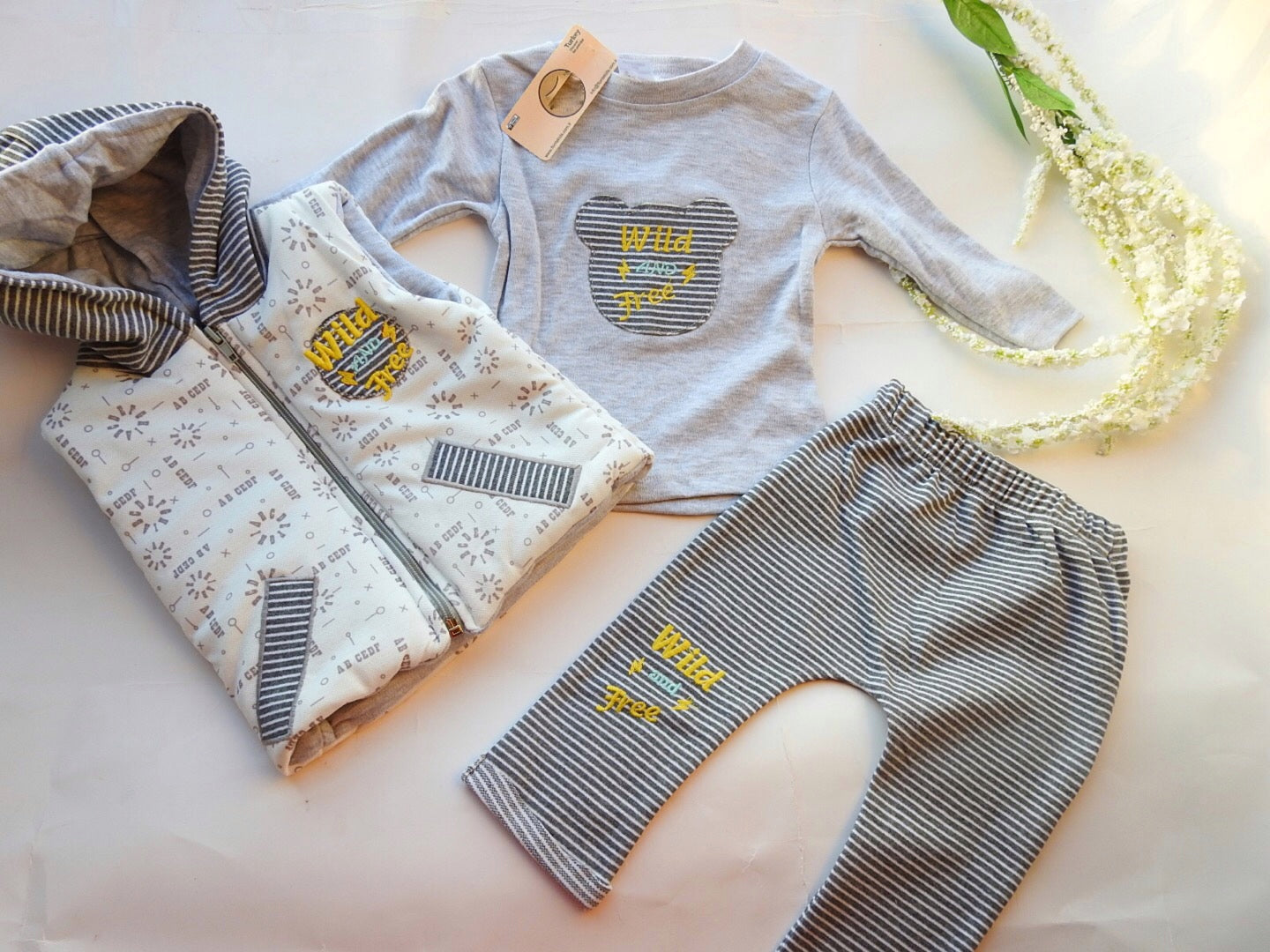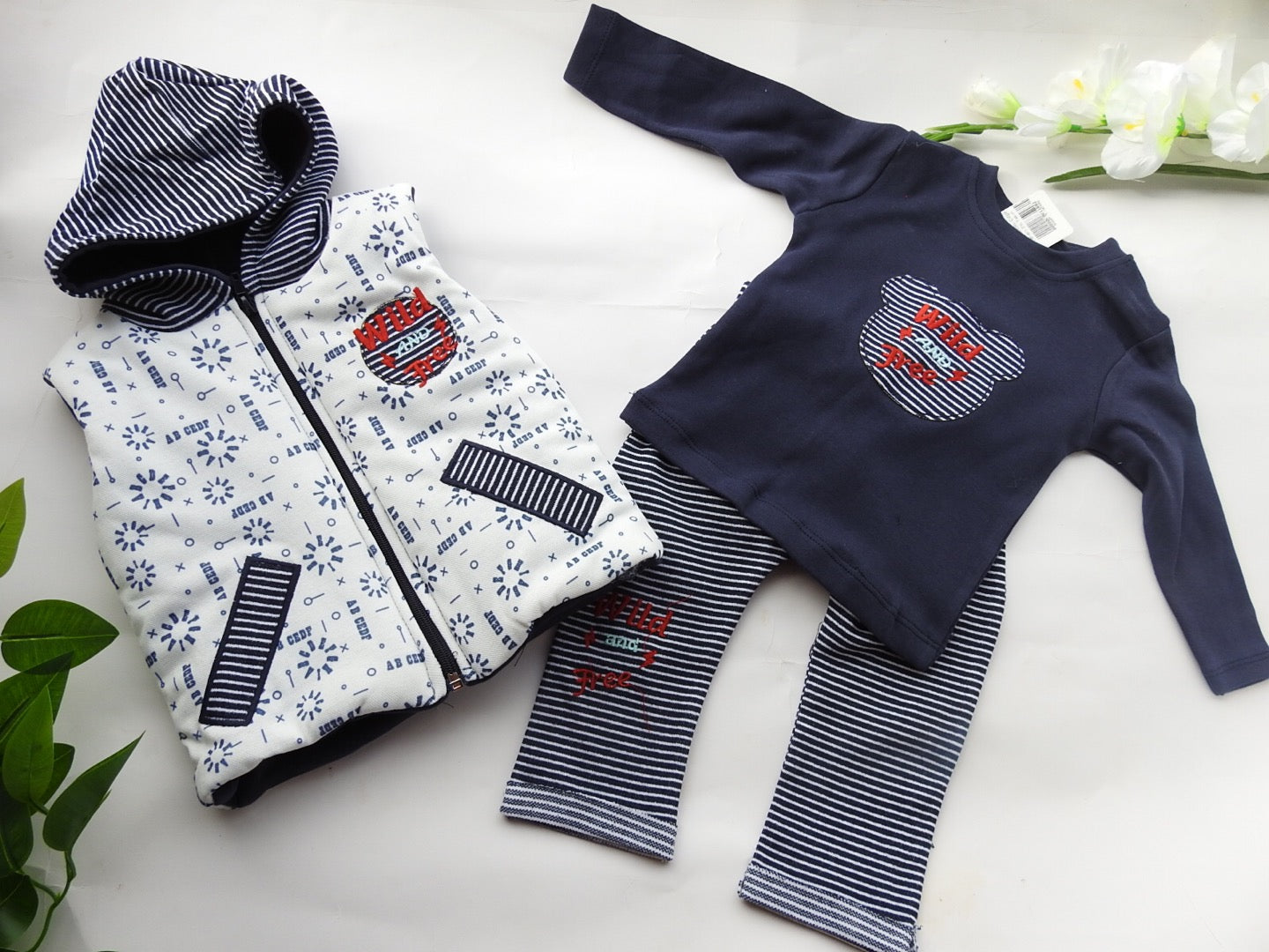 Ensemble 100% coton gilet + pantalon + tricot