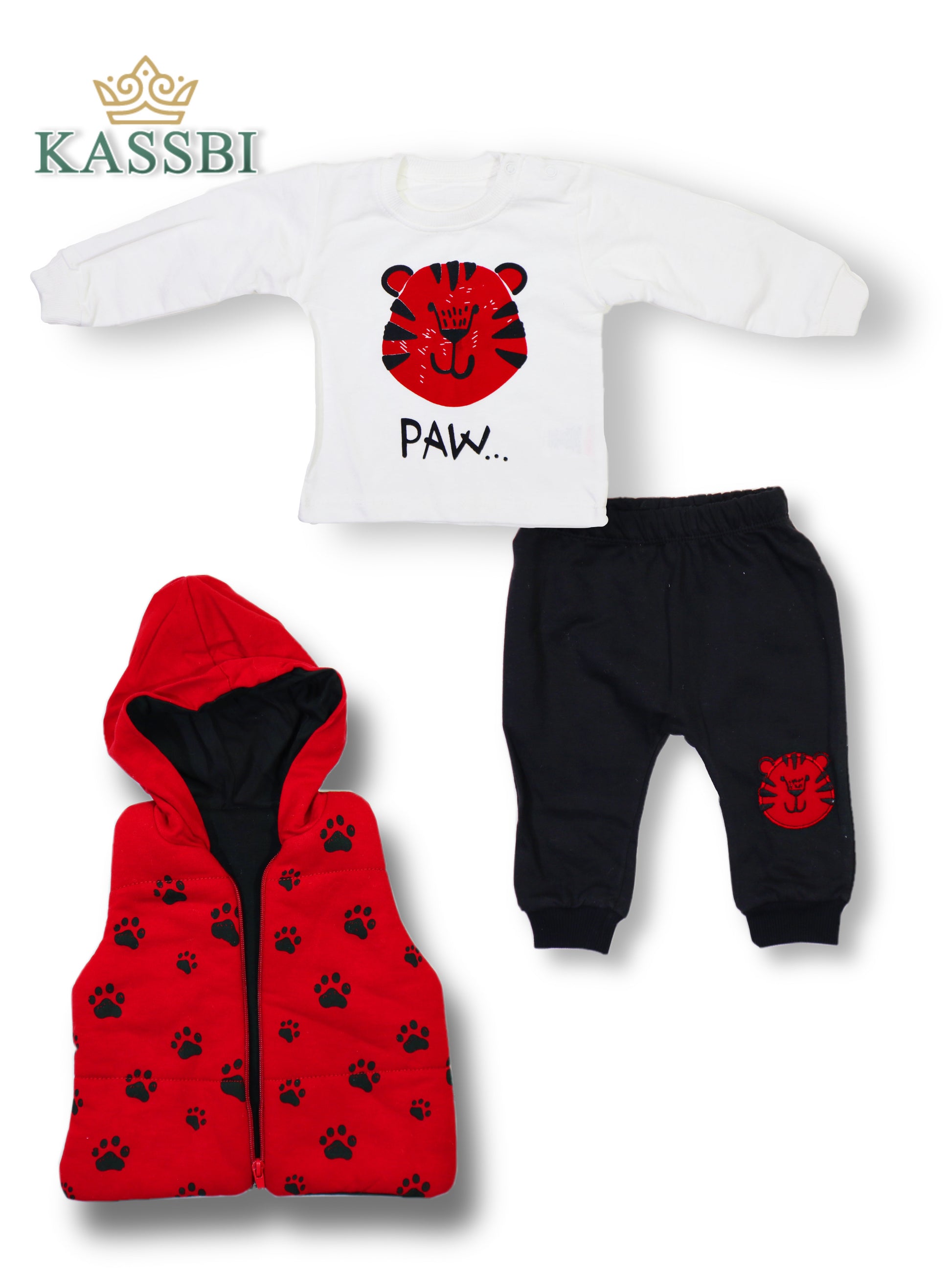 Bébé a besoin de chaleur et de matières douces et rassurantes, Tricot En Coton + Pantalon En Coton + Gilet matelassé est un parfait cocon pour accueillir bébé !