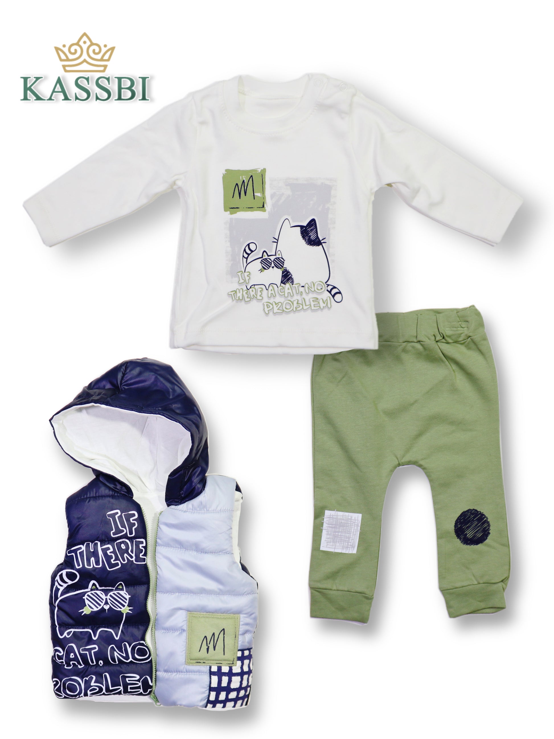 Votre bout de chou sera totalement craquant dans cet ensemble tricot , pantalon , gilet matelassé et rembourré. Le gilet présente un matelassage au dessin fantaisie et une doublure intégrale à petits motifs multicolores.